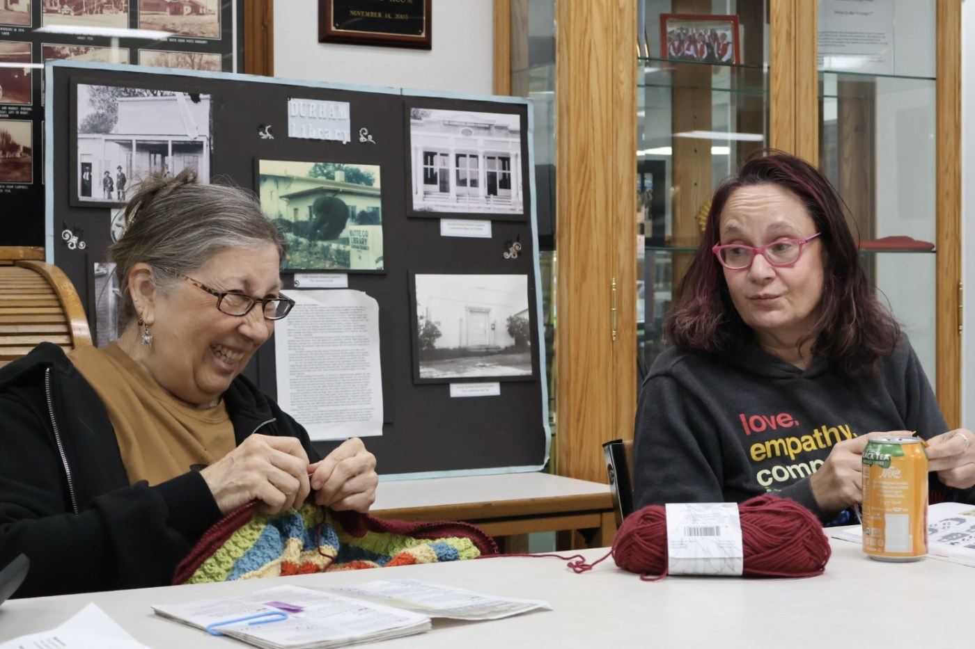 Durham’s vibrant community spirit shines through the weekly gatherings of the Durham Pearls, a fiber arts club that welcomes crafters of all skill levels. Meeting every Wednesday at 1 p.m. at the Durham Library, members come together to knit, crochet, and share their passion for fiber arts. The group, which has been active for over 14 years, recently transitioned to the library after the facility extended its hours through funding from Measure H.